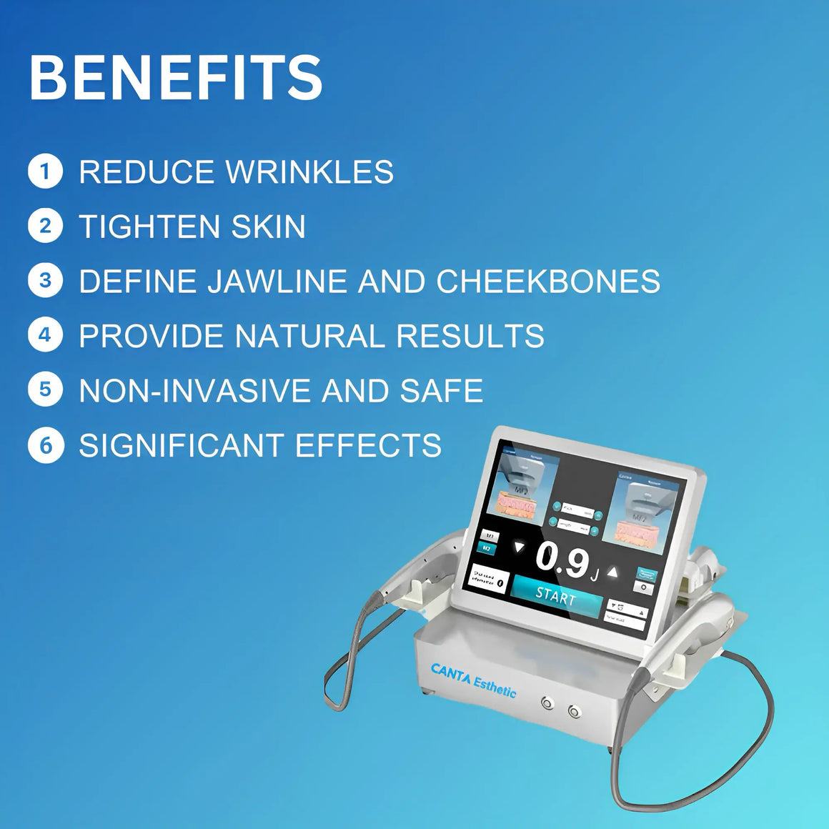 La tecnología principal de la Máquina HIFU es el Ultrasonido Focalizado de Alta Intensidad (HIFU), una tecnología avanzada de belleza facial utilizada para el tensado de la piel, a menudo considerada una alternativa indolora a los estiramientos faciales tradicionales. La esencia de la tecnología HIFU radica en el uso de energía de ultrasonido focalizado para dirigir con precisión capas específicas debajo de la piel, incluyendo la dermis y el sistema aponeurótico muscular superficial (SMAS). A medida que el ultrasonido focalizado penetra en estos tejidos más profundos, provoca un aumento en la temperatura del tejido, lo que lleva a la producción de colágeno, manteniendo así la firmeza y elasticidad de la piel. A través de este proceso, los tratamientos HIFU no solo proporcionan un efecto de tensado inmediato, sino que también promueven las capacidades de auto-sanación y regeneración de la piel.