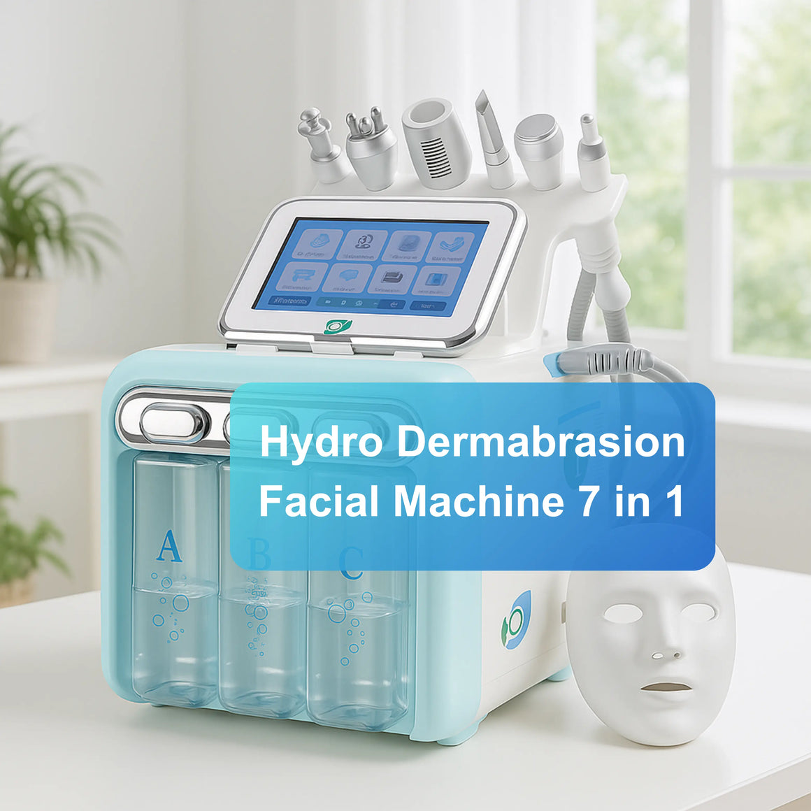 La máquina facial de hidrodermoabrasión 7 en 1 es la 4ª generación de la nueva máquina integral lanzada por Canta Esthetic para tratamientos de hidrodermoabrasión. La 4ª generación de la máquina cuenta con una bomba mecánica de alta potencia para una succión más fuerte e incluye una máscara LED para tratamiento de terapia de luz. Esta máscara ofrece siete diferentes longitudes de onda de modos de terapia de luz, como rojo, azul y amarillo, mejorando aún más la textura de la piel y haciéndola más firme. Dos grandes bombas de potencia (una gran bomba de agua y una gran bomba de aire) equipan la máquina, haciendo el tratamiento más potente y la salida más estable.