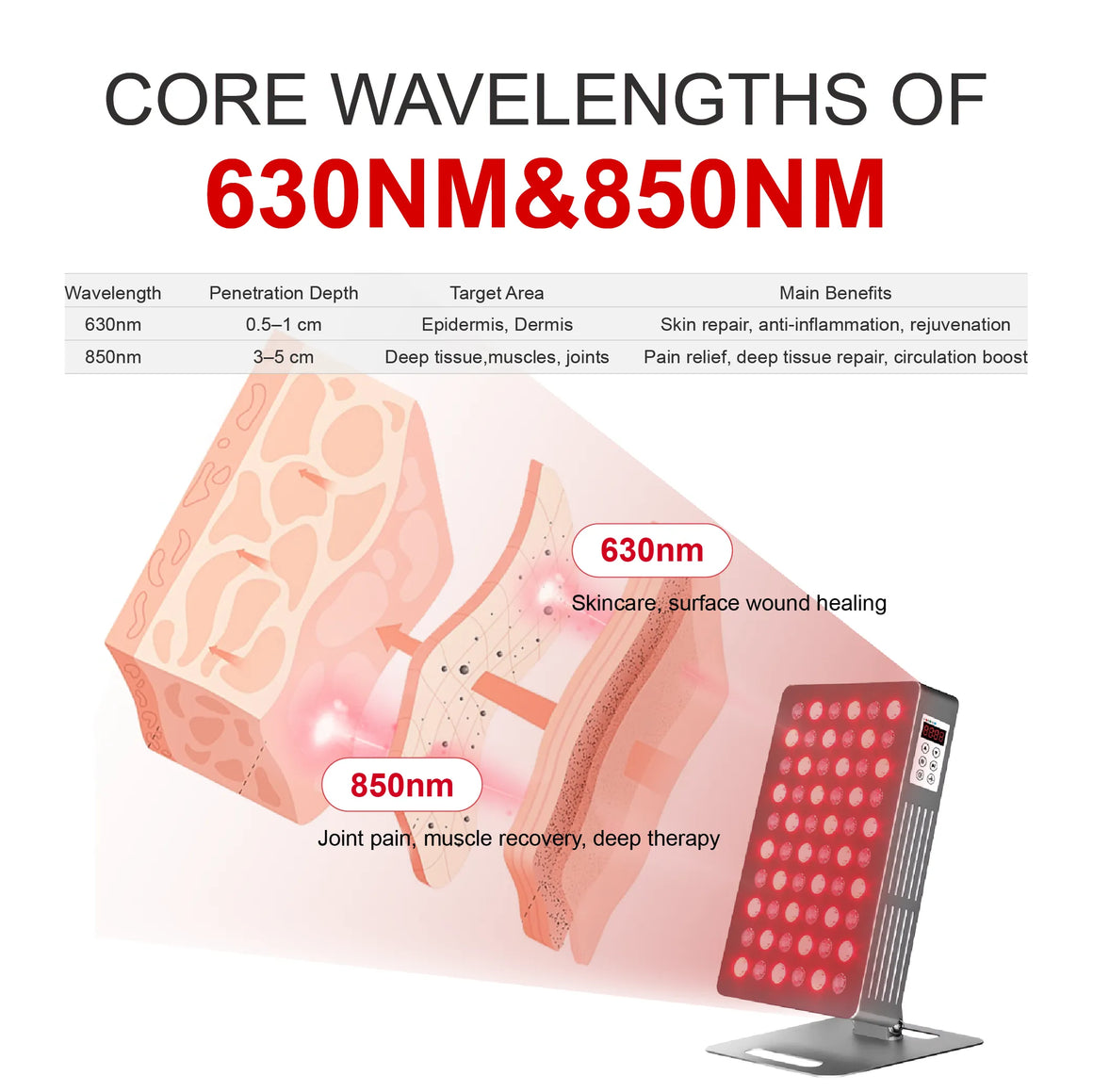 Main wavelength : 630 660 810 830 850nm