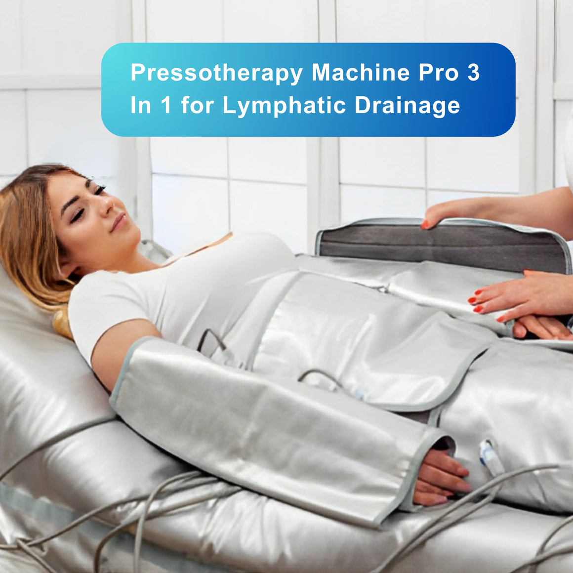 La máquina de presoterapia se utiliza en fisioterapia y tratamientos de belleza para promover el flujo de la linfa a través del sistema linfático. Esta máquina de presoterapia, que incluye una bomba que suministra aire a prendas especializadas, cuenta con tres funciones principales: Presión de Aire, Infrarrojo Lejano y EMS (Estimulación Muscular Eléctrica).