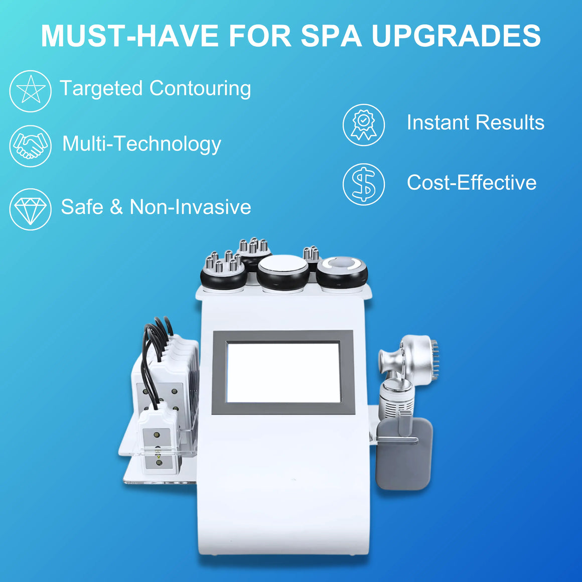 Fonctionnalité Neuf-en-Un : La cavitation, le vide, la radiofréquence, le laser lipo, le marteau froid et la technologie microcourant sont entièrement intégrés en un seul appareil, offrant un remodelage corporel complet et un rajeunissement facial.