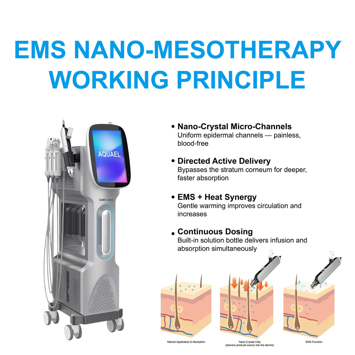 • EMS Nano-Mesotherapy: Leverages nanotips and micro-currents to open skin absorption channels and boost nutrient uptake by over 40%.