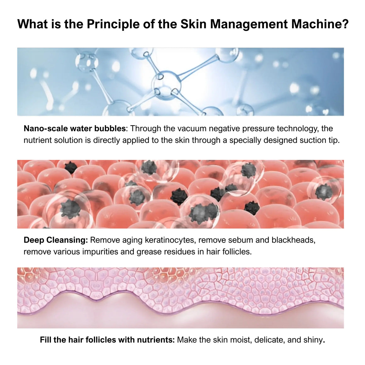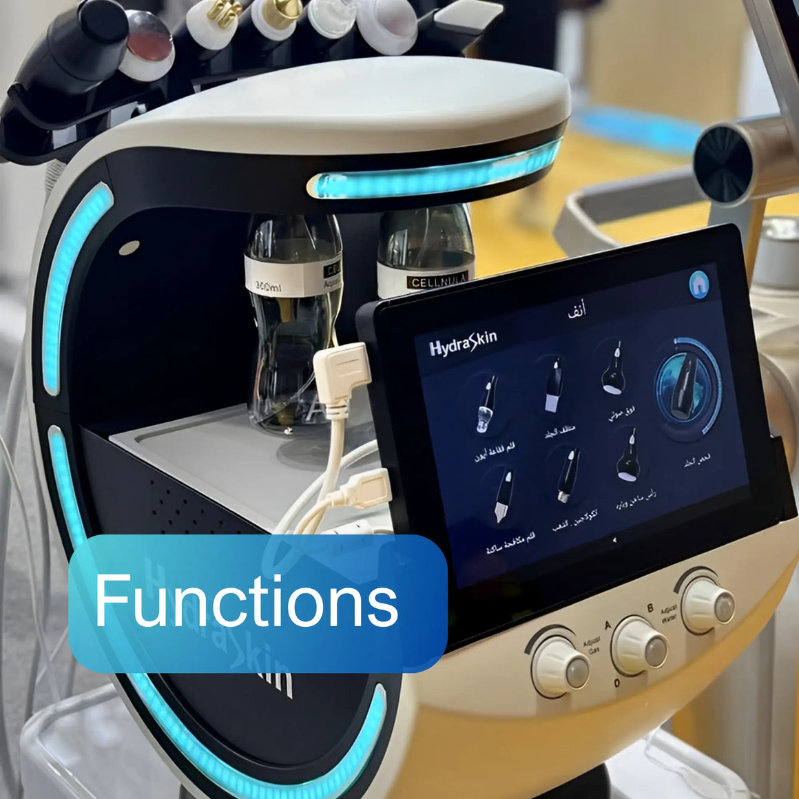HydraSkin utilizes a 24-megapixel high-definition macro camera combined with triple-spectral imaging technology to capture detailed facial skin images. Through its AI-powered core engine, it intelligently diagnoses and analyzes skin conditions across 8 dimensions, generating personalized beauty care programs based on diagnostic results. The device also features smart recommendations for professional skincare products. Integrated with six high-performance beauty technologies—including "shovel knife," "ion bubble pen," "ion airbrush pen," "ultrasonic," "Golden RF," and "ice-sealed head"—it delivers comprehensive skin management by aligning AI-driven diagnostics with targeted skincare product matching. This makes HydraSkin a multifunctional, all-in-one solution for skin analysis and treatment.