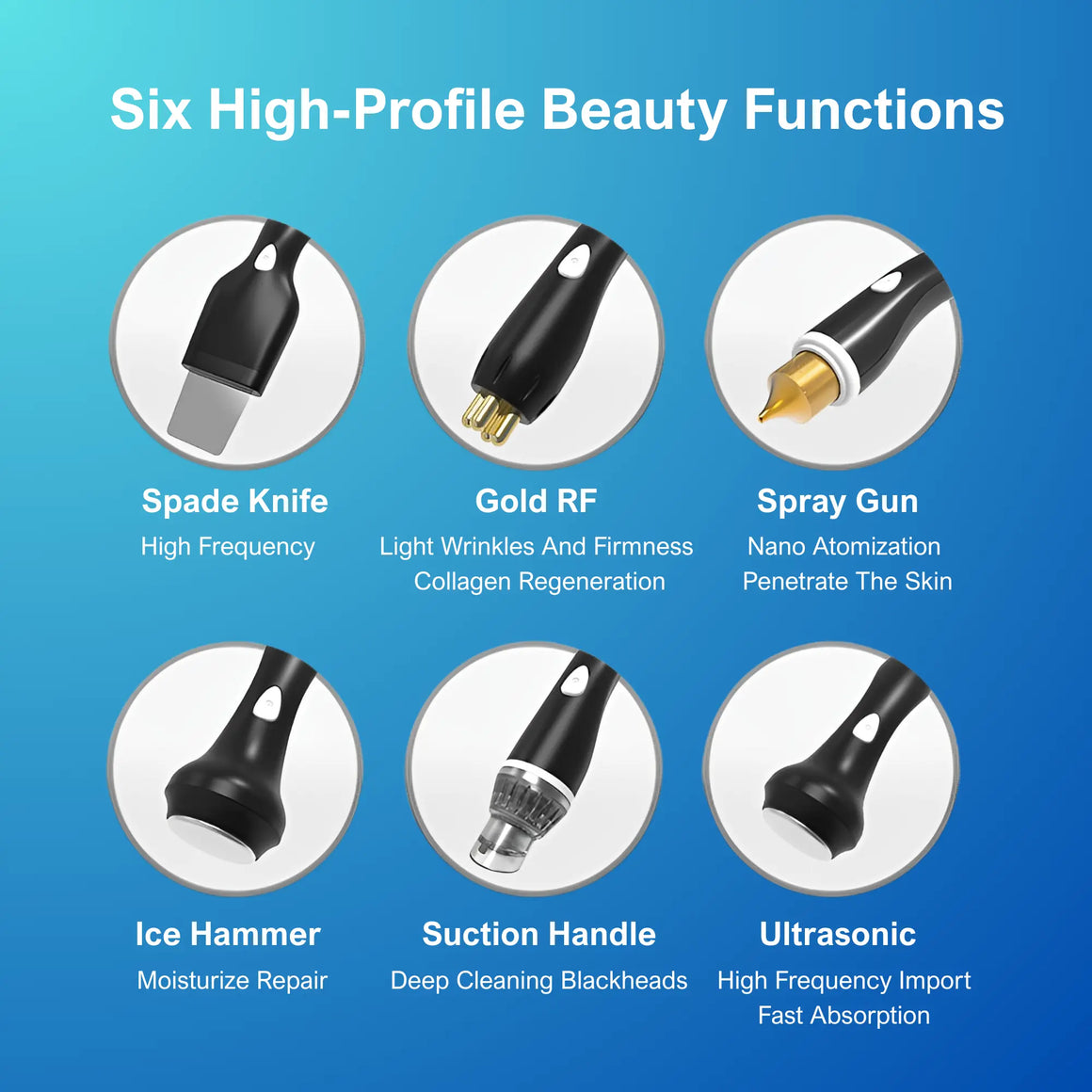 Six Core Treatments: There are six handles with the Hydra Skin Machine: ultrasonic probe, shovel knife, ion bubble pen, ion airbrush pen, golden RF head, and ice-sealed head.