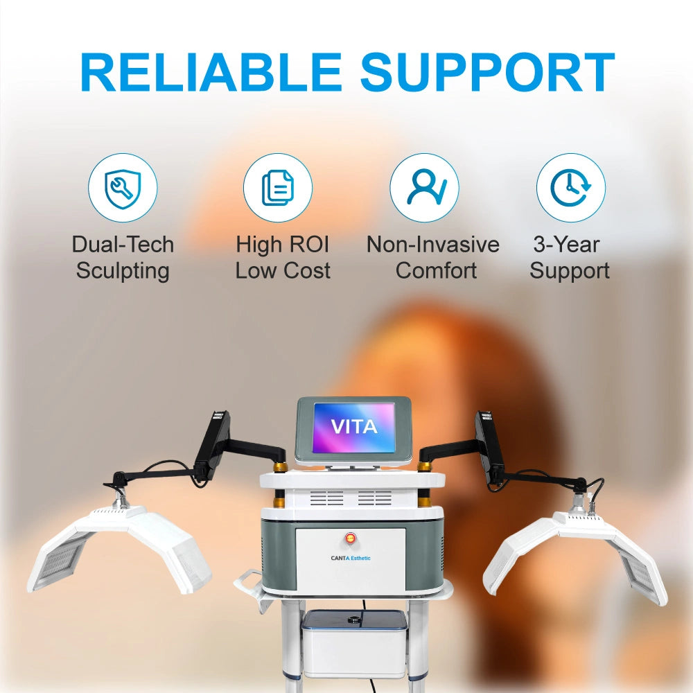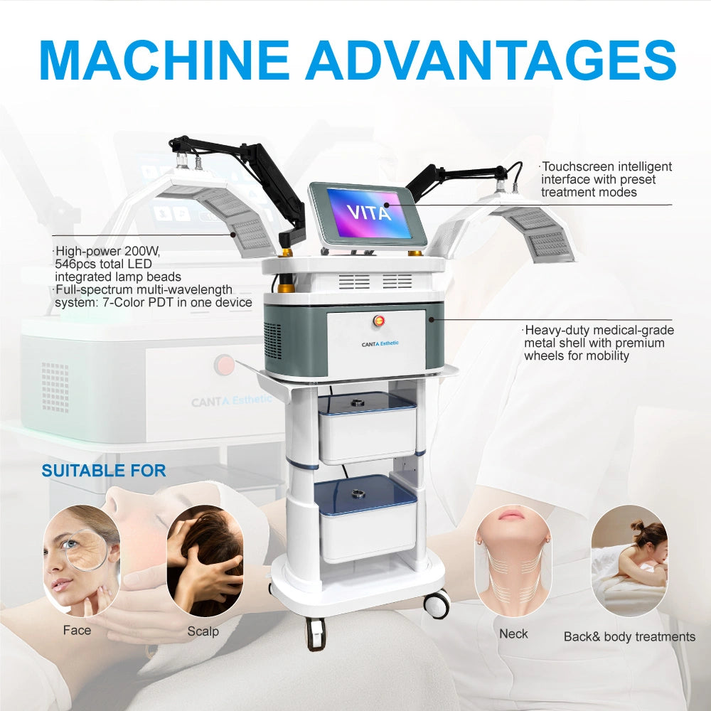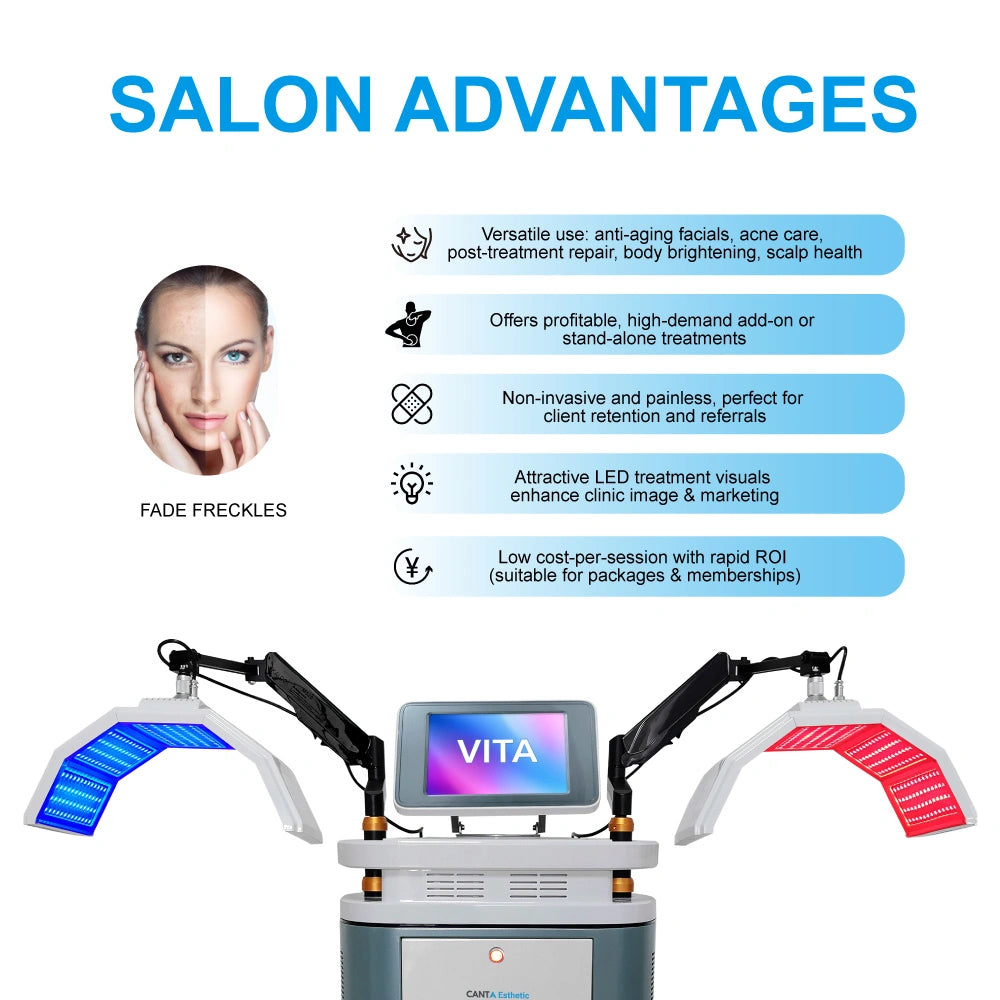 Introducing the VITA PDT&LED Light Therapy Device — a premium-grade professional LED treatment system designed specifically for medspas, beauty salons and skin clinics that want to offer non-invasive, science-backed rejuvenation treatments with visible results. Using dual high-power 273-piece LED panels and full-spectrum photodynamic therapy (red, blue, yellow, green, cyan, purple, white), it tackles a wide range of skin concerns — from collagen loss, acne, pigmentation to redness and aging — with zero downtime and no discomfort.