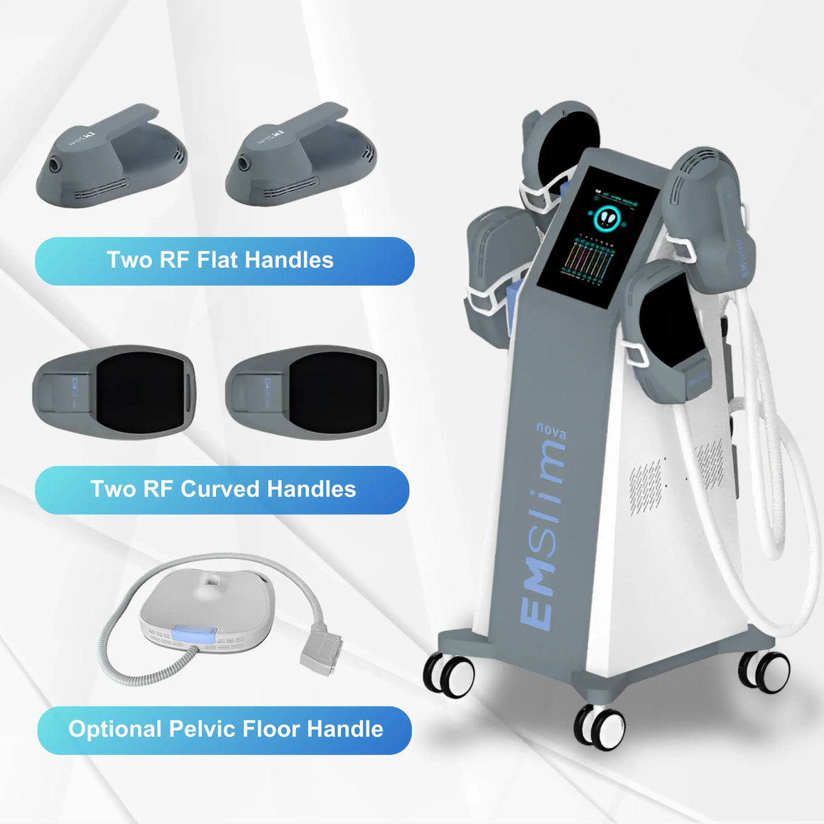 Maszyna EMSlim NOVA wykorzystuje wysokoenergetyczną skupioną energię elektromagnetyczną do wywoływania 20 000 skurczów mięśni na sesję. Różne kombinacje impulsów wywołują różne stymulacje, prowadząc do supramaksymalnych skurczów, które nie tylko promują wzrost mięśni, ale także zwiększają rozkład tłuszczu dzięki funkcji RF.