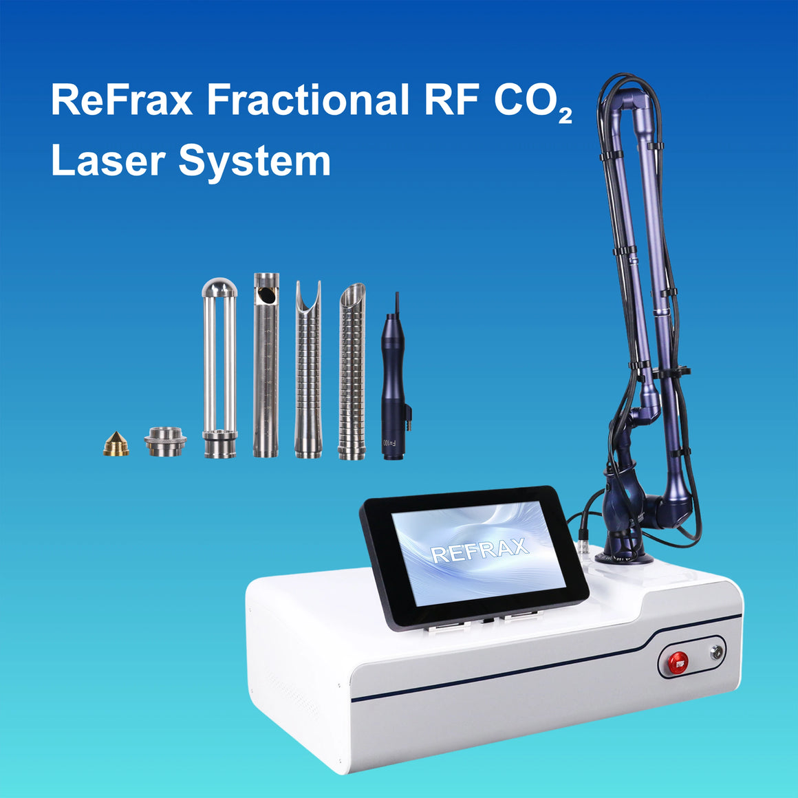 ReFrax utilizes 10.6µm RF metal CO₂ laser to output fractional micro-beams through the optical guide arm. Each beam of light energy is focused on the skin (or mucous membrane) to produce micro-ablative columns, and the surrounding intact tissue is retained to form a “thermal bridge”, activating the regeneration of new collagen and elastic fibers in a short time, thereby achieving tissue remodeling, firming and pigment regulation.